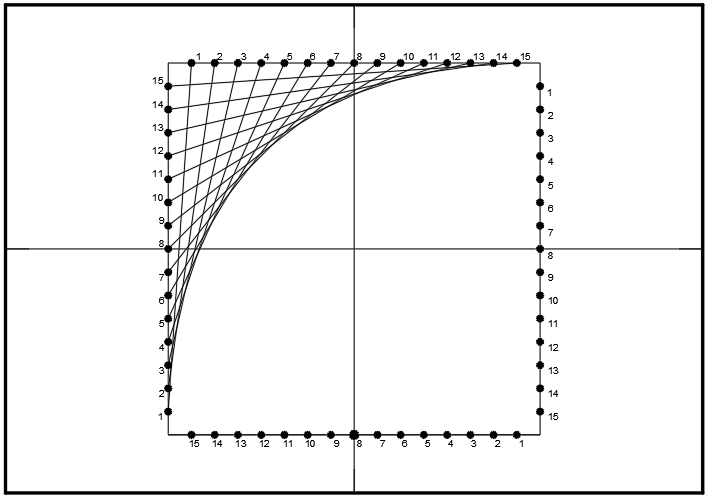Su ogni lato traccia dei puntini distanti tra loro 1 cm e numerali come indicato in figura.