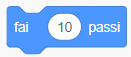 Questo è, forse, il blocco più semplice da utilizzare, in quanto consente semplicemente di spostare, secondo un movimento rettilineo, uno sprite del numero di passi che è possibile specificare all’interno dell’ovale.