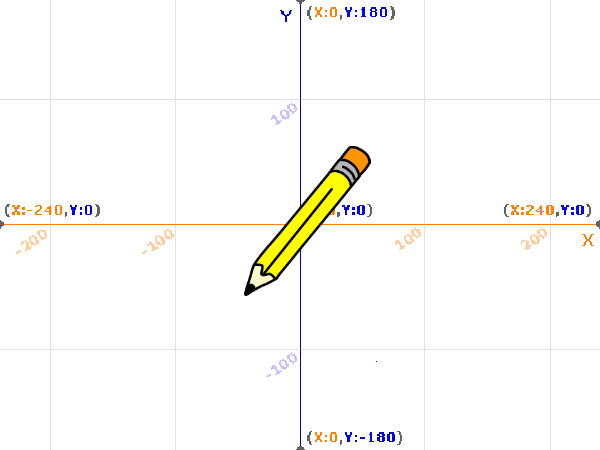 Premesso questo, possiamo iniziare. Anche se non è obbligatorio, per rendere un po’ più realistica questa animazione abbiamo utilizzato con sfondo il piano cartesiano (XY-grid) e come sprite la matita “pencil“: