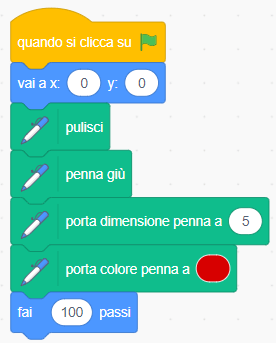 Ora che conosciamo i blocchi Penna e le proprietà dei suoi elementi più importanti, possiamo provare ad utilizzarli per disegnare figure geometriche. Iniziamo con il disegno di un quadrato.