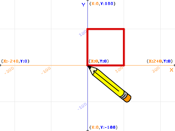 Ad esempio, può essere utile disegnare la figura partendo dall’origine degli assi. Ovviamente è solo un esempio, però in questo modo sarà più semplice, leggendo i numeri che sono presenti sullo sfondo, verificare la correttezza del codice e la corrispondenza tra l’obiettivo che ci siamo posti e il risultato.