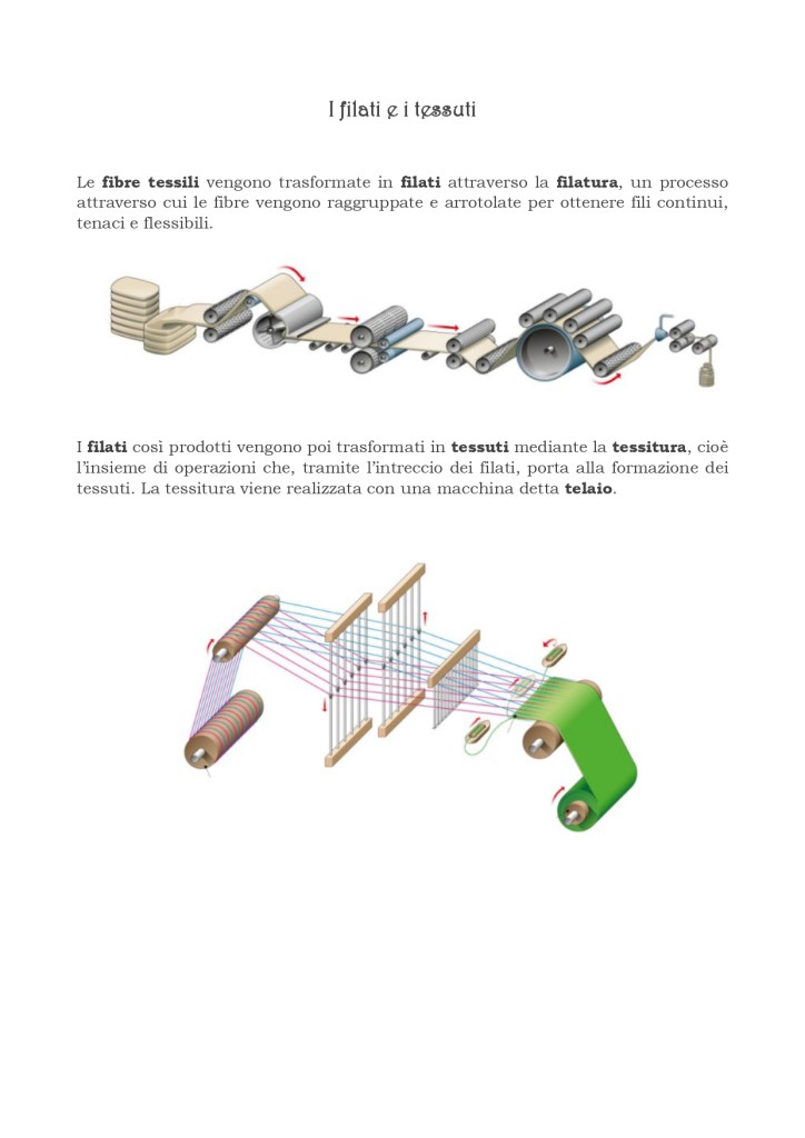 Si chiamano fibre tessili quei prodotti di origine naturale o artificiale dai quali è possibile ricavare un filato. Il filato è un insieme di fibre tessili unite e ritorte in modo da formare un filo continuo, che può poi essere usato per confezionare i tessuti. Le fibre tessili possono essere classificate secondo la loro origine.