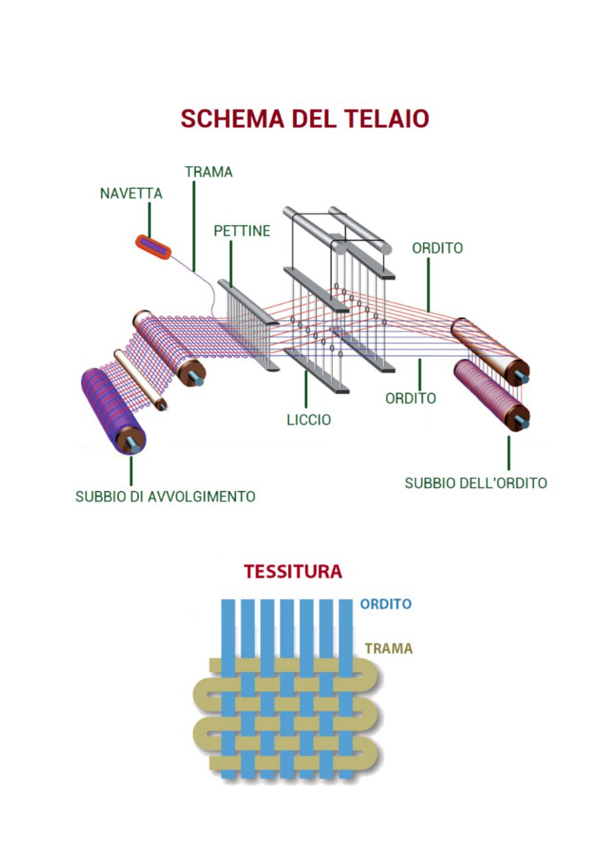 Ripetendo molte volte le stesse operazioni, si viene così a formare il tessuto tela che si raccoglie sul subbio di avvolgimento.