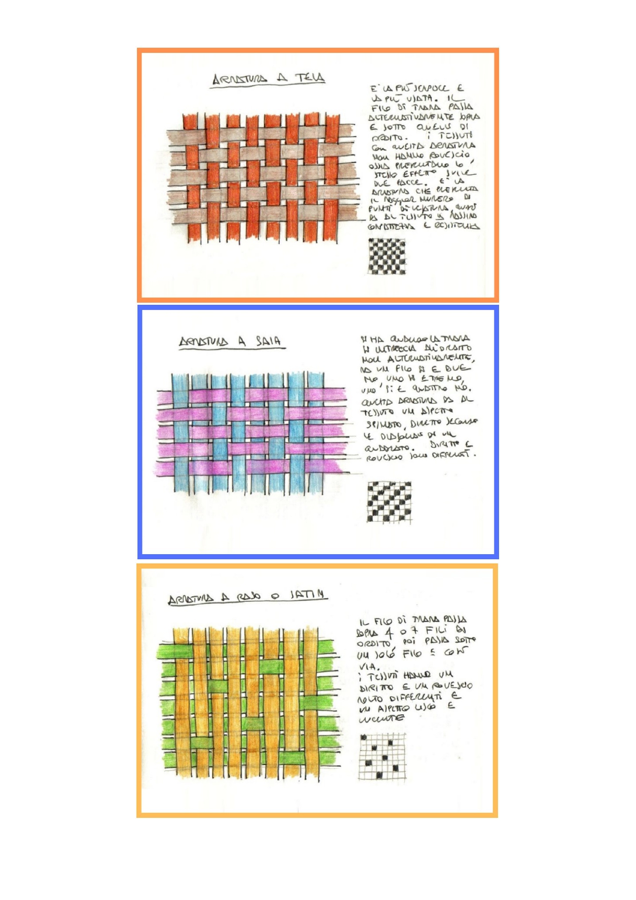 I tessuti sono dei manufatti prodotti con l’operazione di tessitura, ossia mediante l’intreccio di due sistemi di fili: quelli di ordito, disposti nella direzione della lunghezza della pezza, e quelli di trama, nel senso della larghezza. Il modo con cui s’intrecciano i fili che costituiscono un tessuto si chiama armatura. Le armature fondamentali sono: tela; saia o spina; raso o satin. Combinando e ampliando le armature fondamentali se ne ottengono innumerevoli altre. L’operazione di tessitura si esegue con i telai, che possono essere a mano (a navetta), ancor oggi usati nell’artigianato, oppure meccanici, impiegati negli stabilimenti industriali.