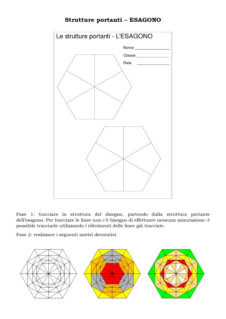Fase 1: tracciare la struttura del disegno, partendo dalla struttura portante dell’esagono. Per tracciare le linee non c’è bisogno di effettuare nessuna misurazione: è possibile tracciarle utilizzando i riferimenti delle linee già tracciate.