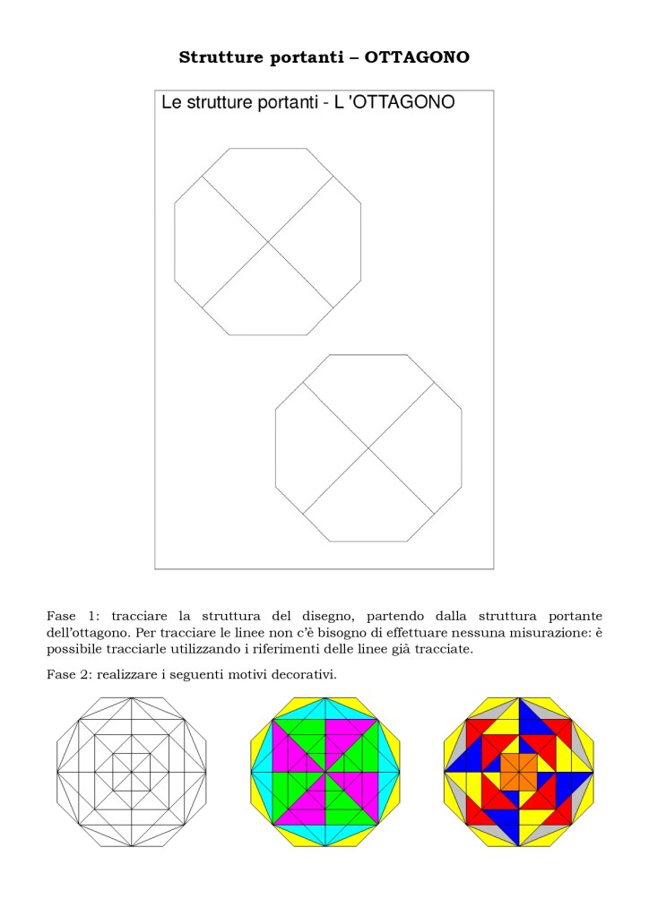 Fase 1: tracciare la struttura del disegno, partendo dalla struttura portante dell’ottagono. Per tracciare le linee non c’è bisogno di effettuare nessuna misurazione: è possibile tracciarle utilizzando i riferimenti delle linee già tracciate.
