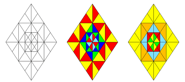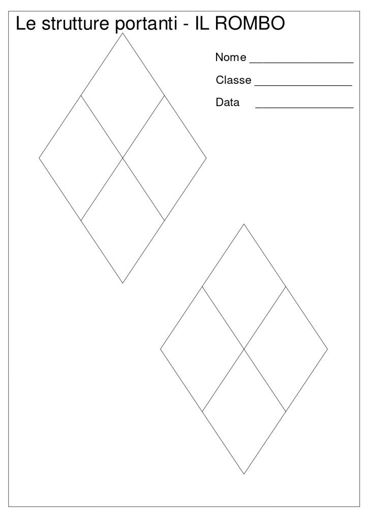 Fase 1: tracciare la struttura del disegno, partendo dalla struttura portante del rombo. Per tracciare le linee non c’è bisogno di effettuare nessuna misurazione: è possibile tracciarle utilizzando i riferimenti delle linee già tracciate.