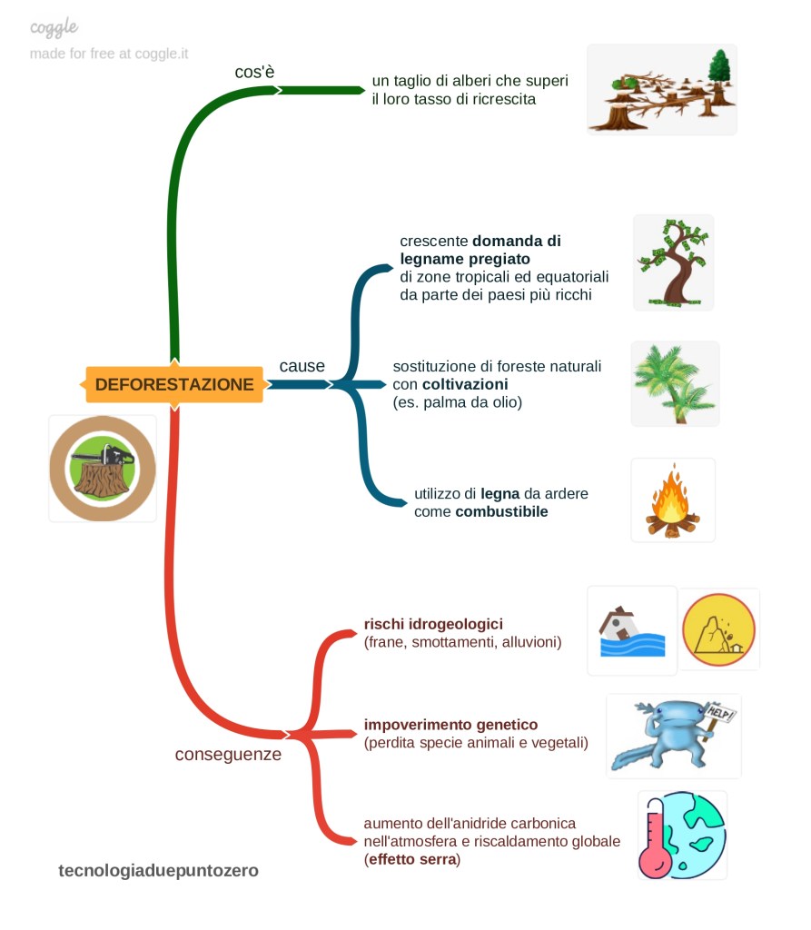 • A livello globale, gli effetti della deforestazione causano l’aumento dell’anidride carbonica nell’atmosfera e l’innalzamento della temperatura media del pianeta (effetto serra).